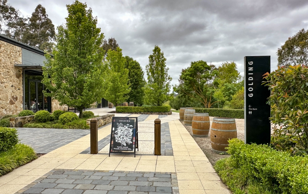 次の訪問先は、レンズウッド内にあるゴールディング・ワインズです。ゴールディング夫妻により創設され、ワインの生産は2002年からと比較的若いワイナリーです。広く美しい庭園、石造りのテースティングルーム&レストランを備えたワイナリーで、オーストラリアのベストセラードアに選ばれたワイナリーであることも訪問理由になっています。