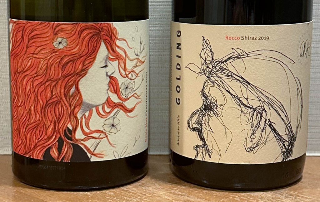 セラードアで購入したのは、下の2本。シャルドネとシラーズでいずれも42豪ドルでした。アーティスティックなラベルで、ほとんどジャケ買いです。