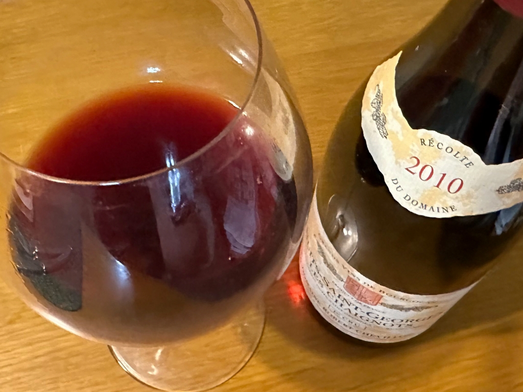 このドメーヌのワインらしく濃いめのラズベリーレッド。熟成を示すやや茶色の色合いも混ざる。香りは、最初はやや閉じ気味。2010年のブル赤に時々経験する特徴です。スワリングにより徐々に開き出し、ブルベリーやドライイチジクにスーボア、シダ、腐葉土の熟成香も。味わいは、やや強めの酸のアタック、タンニンはまだ、しっかり感じられるものの比較的滑らかな質感。2009年ものほどの熟した果実味ではなく、比較的冷涼な感じだが、ヴィンテージを問わない安定感は流石にロベール・シュヴィヨンらしい。2日目にはやや獣香も強くなるが、ニュイ・サンジョルジュらしいアーシーな印象は変わらない。