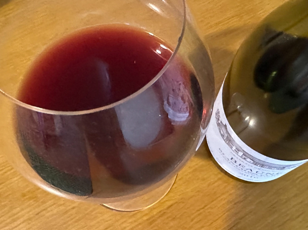 外観は、えんじがかった艶のあるラズベリーレッド。上のオーレリー・ベルトよりも少し淡い。こちらも香りは良く開いている。赤系ベリーの果実香、レッドローズ、リコリスにミルクティーっぽい香りも。アタックの酸は強くないが、不足しているという訳ではない。果実味主体で、タンニンは滑らかで円やか。いかにもボーヌの良年らしい優しを感じるワイン。アタックからミッドパレットに感じる甘さは抑えられているが、円やかなタンニンのせいか、余韻には甘みを感じる。若いワインですが、1時間くらいするとスーボアや僅かに腐葉土の香りも。前出のオーレリー・ベルト同様、暑い気候からの熱量はぎりぎり抑えられている印象。
