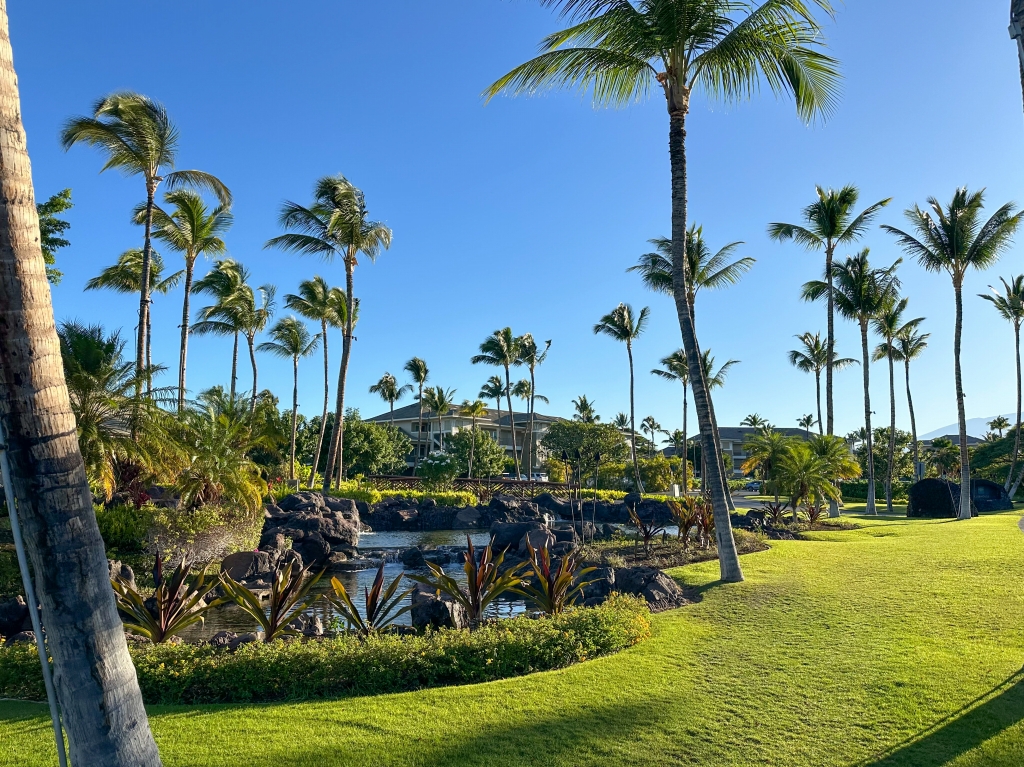 晴天率が極めて高いことから、特にカイルアコナ北部は、米国の大手ホテルにより開発されたリゾートエリアとなっています。今回の滞在地のワイコロア(Waikoloa)ビーチもヒルトン・ホテルによって開発されたリゾートエリアで、大型ホテルと多くのコンドミニアムが立ち並んでおり、さらに27ホールのゴルフ場を有しています。