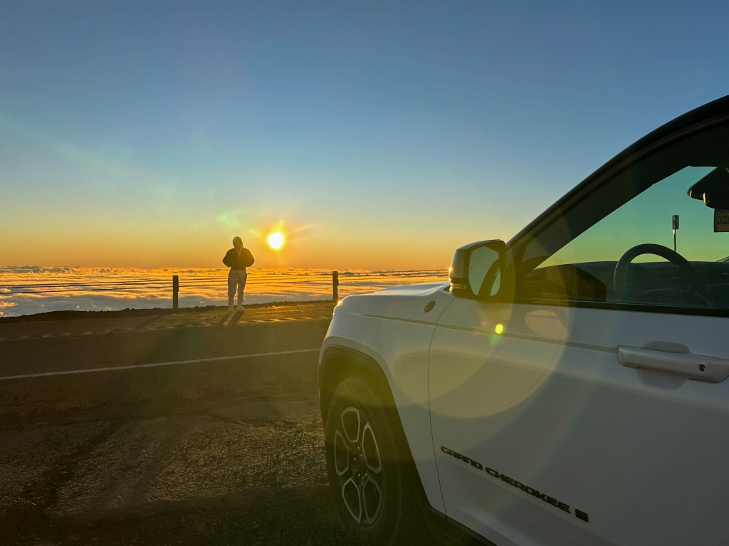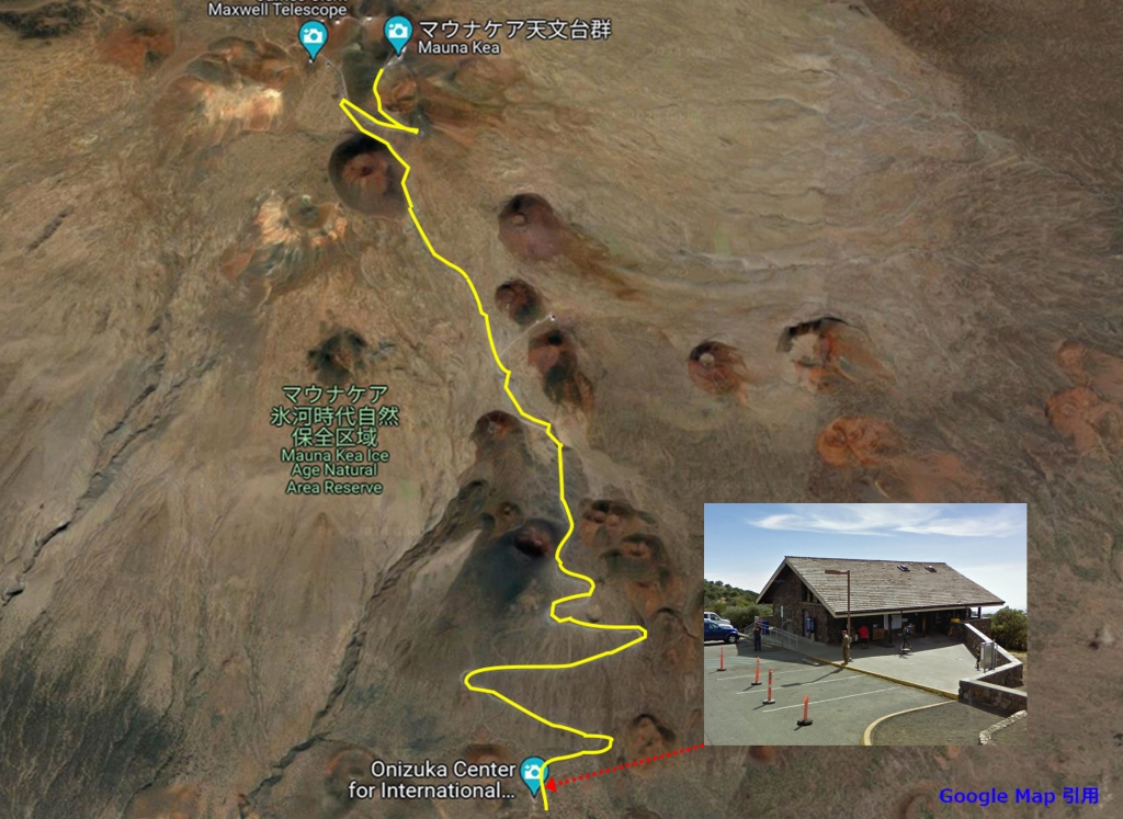 マウナケアの山頂までは、自動車でで登れる道路がありますが、観光客は、ツアーを利用するのが一般的です。理由は途中から急こう配の未舗装路となるため、通常のレンタカーで登ることが禁止されている(保険が適用されない)ためです。唯一、レンタカー会社によっては、車高の高い4WDであれば、走行が許されています。今回は、レンタカー会社で、マウナケア山頂に行ける車種へのアップグレードを勧められ、思わず乗っかってしまいました。(結果、凄く高価なレンタカーになりました笑)