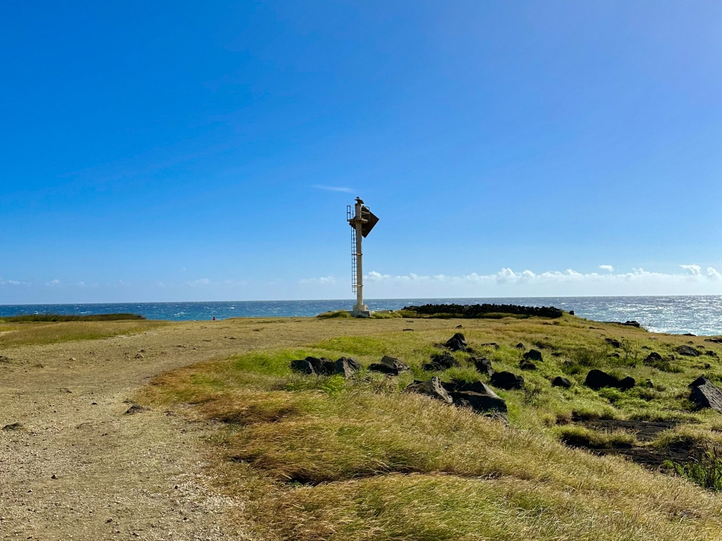ハワイ島最南端、というより、アメリカ合衆国最南端のサウスポイントには、前回も訪れていますが、ここは、航路標識がポツンと建っているだけで、観光地ではありません。地元の人が、釣りやダイビングを楽しんでいます。ちなみに、ここへも4WD以外のレンタカーで行くことが禁じられています。