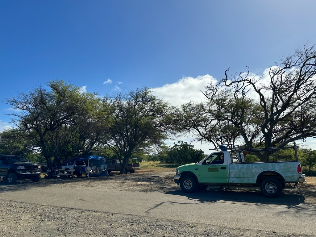 今回の目的地は、初めて訪れる、ここから近い(おそらく)アメリカ最南端のサンドビーチのグリーンサンドビーチです。基本的にはレンタカー禁止なので、駐車場から徒歩で向かうのが一般的です。車を借りたダラーレンタカーでは、4駆SUVであれば可能とのことでしたが、相当な悪路が含まれるようなので、当初の予定どおりトレッキングとしました。