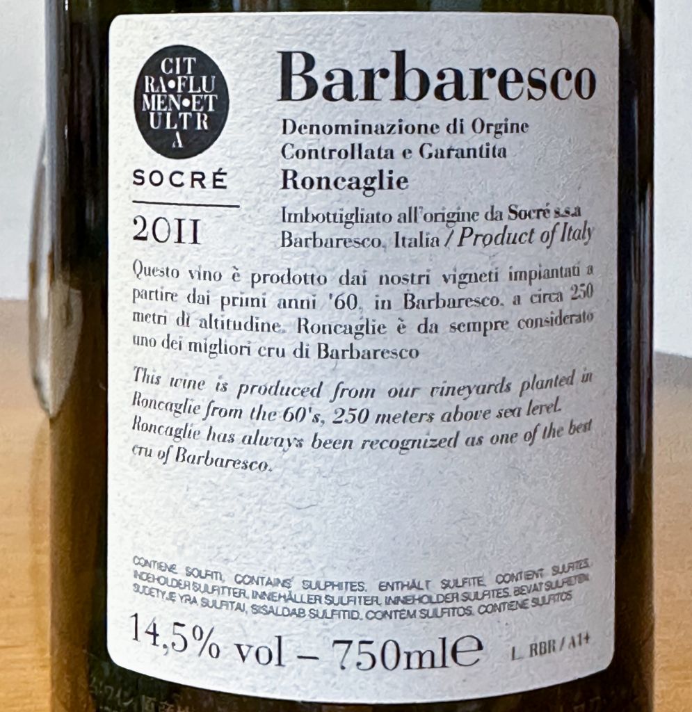 ソクレのロンカリエの裏ラベルにも誇らしげに「バルバレスコの最良のクリュのひとつ」と記されています。