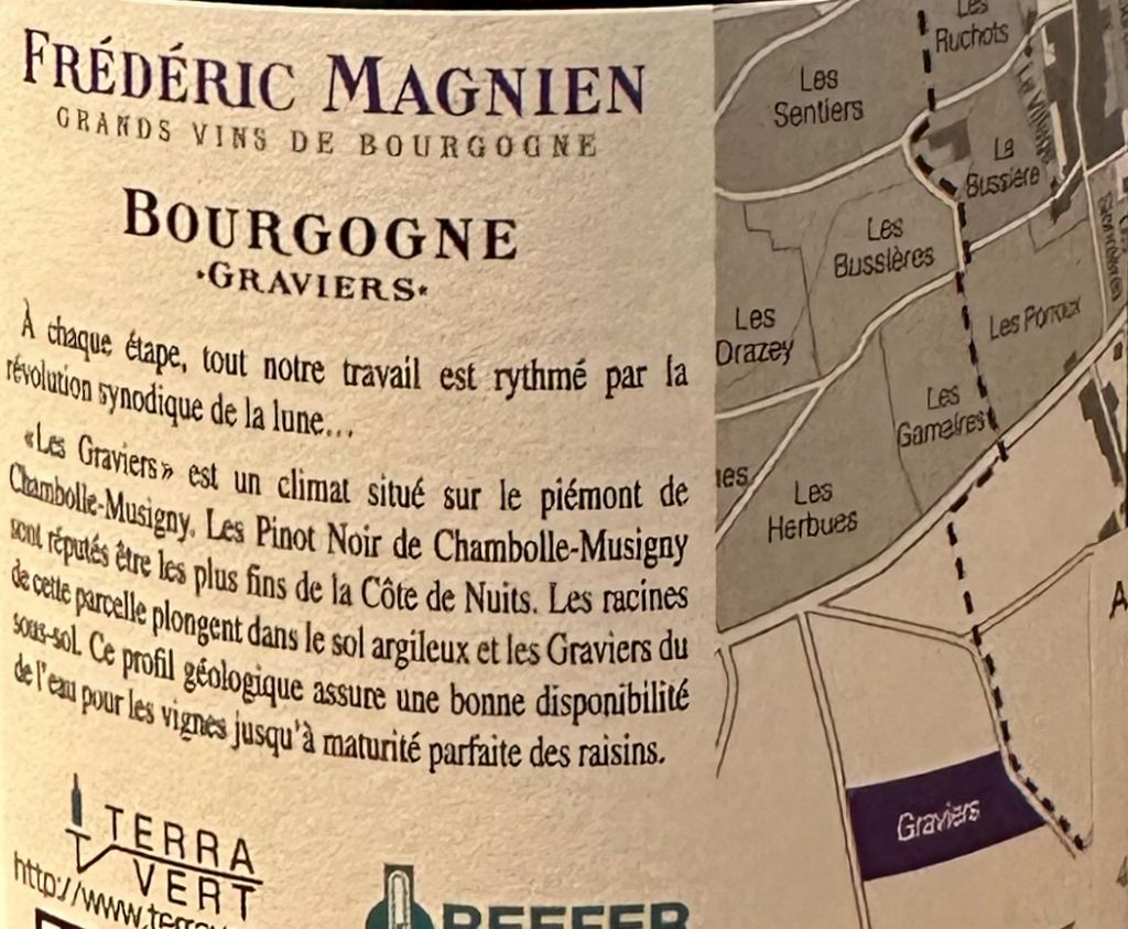 「グラヴィエール」というのは、フレデリック・マニャンのワイン銘柄にしばしば付けられるテロワールをイメージした名前ではなく、シャンボール・ミュジニーの畑の名前のようです。