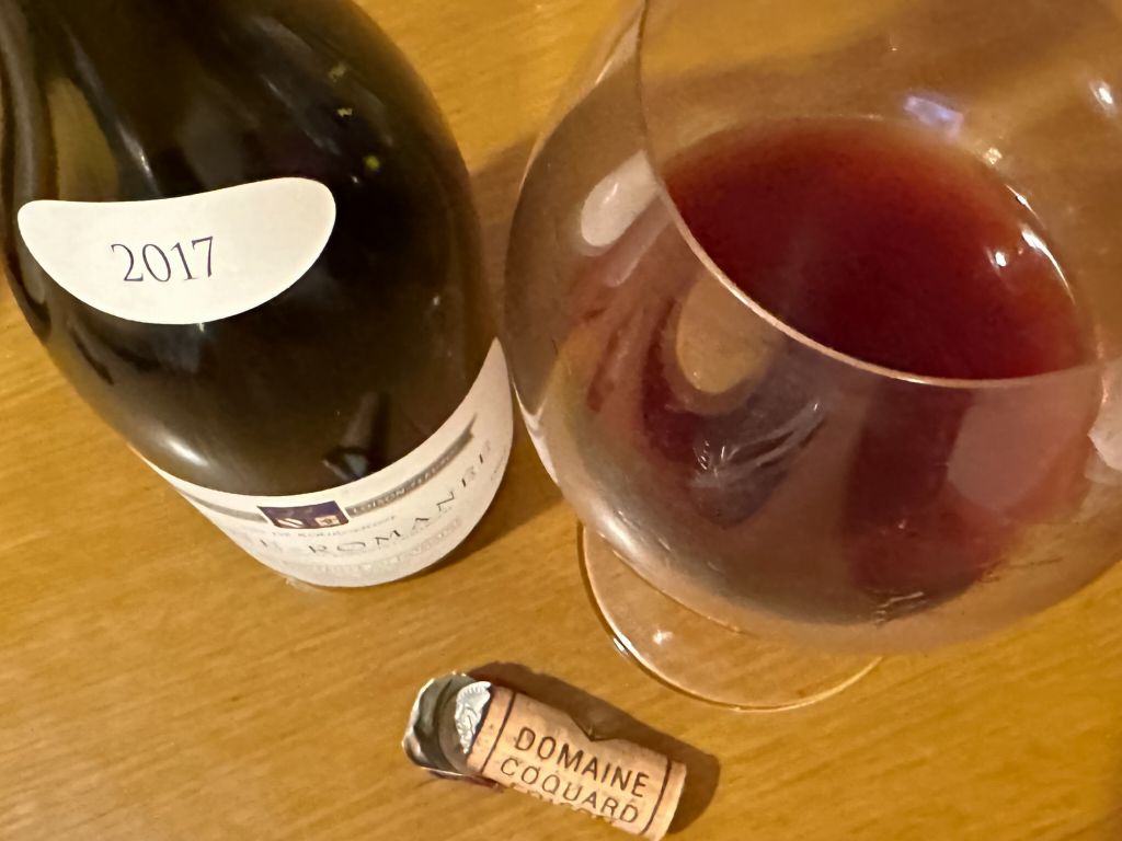ラズベリーやチェリーの赤系果実に、薔薇やセージ、スーボアの香り。僅かに紅茶やタバコのニュアンスも感じるが、妖艶な熟成香には至らない。味わいのアタックにやや強めの酸を感じ、柔らかい果実味ときめ細かいが、しっかりとしたタンニンが余韻まで続く。ヴォーヌ・ロマネの華やかさや、2017年ヴィンテージに期待される外交的な特徴よりもやや冷涼寄りで落ち着いた感じだが、幅広い料理にあわせられそうなワイン。