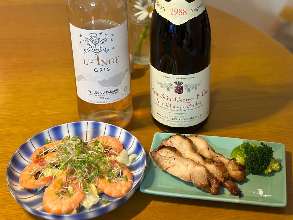 ↑番外ですが左のワイン、ランジュ・グリ(L’Ange Gris Vallée du Paradis)という南仏のワインです。千円台のワインですが、海老の塩焼きと合うなかなか美味しいデイリーワインでした。こちらは信濃屋で購入可能です。