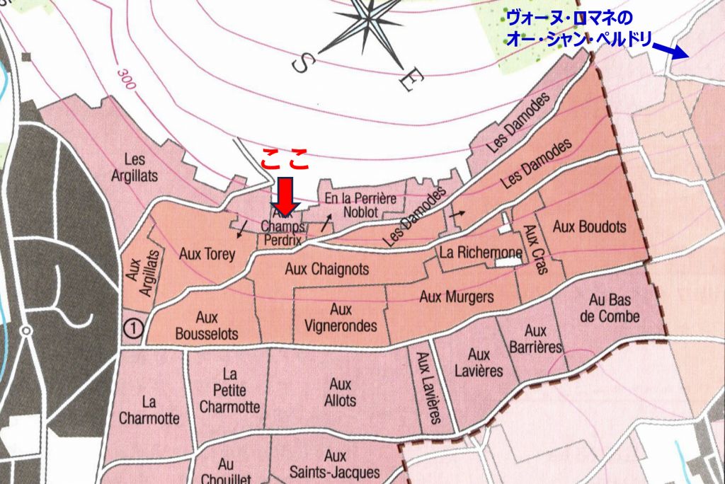 オー・シャン・ぺルドリという名の畑ですが、ヴォーヌ・ロマネにも村名畑として存在します。ラ・ターシュの上部に位置するそちらの方が有名かと思います。ニュイ・サン・ジョルジュのオー・シャン・ぺルドリは、0.7haほどの小さな1級畑です。