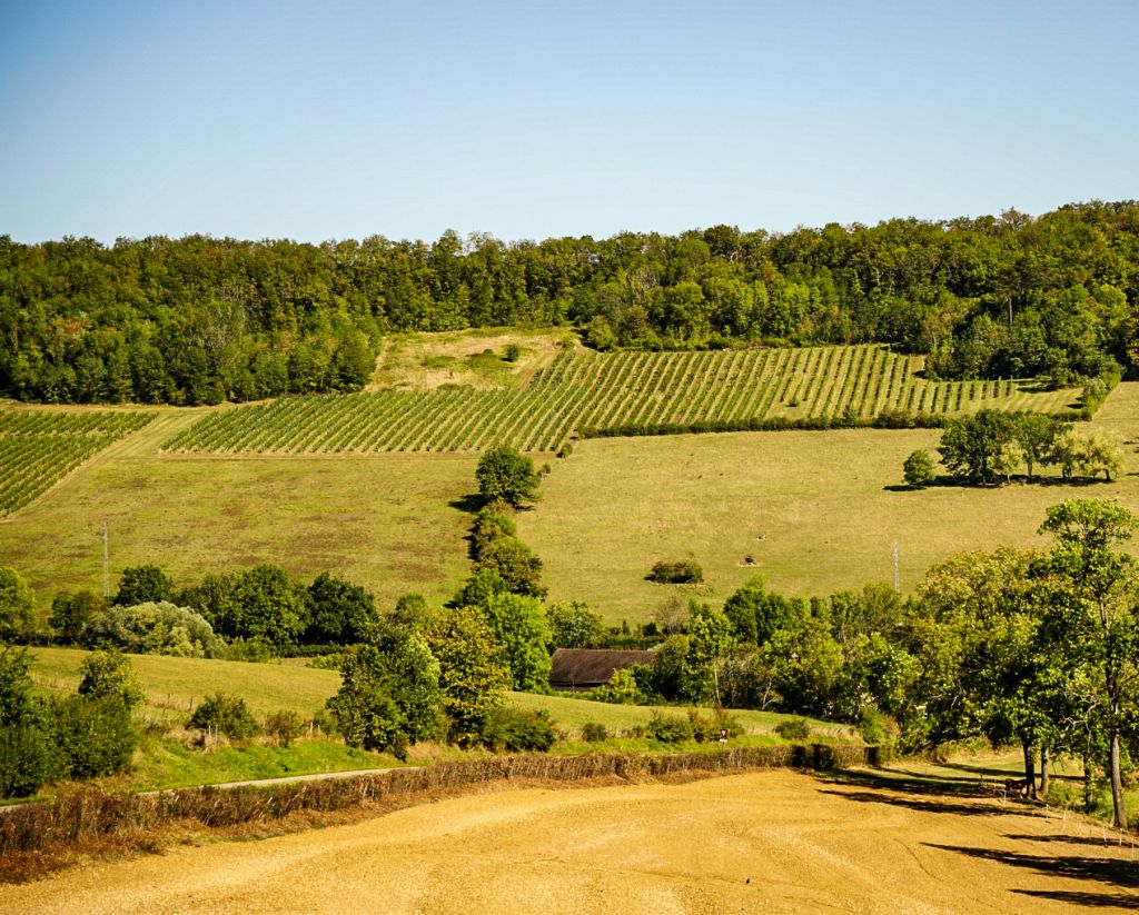 ワイナリーの裏手にブドウ畑が広がっています。HPによると、海抜250~350mの幅200mの丘の中腹に水平に広がっている畑で、土壌は粘土石灰岩、ジュラ紀の石灰岩とのこと。