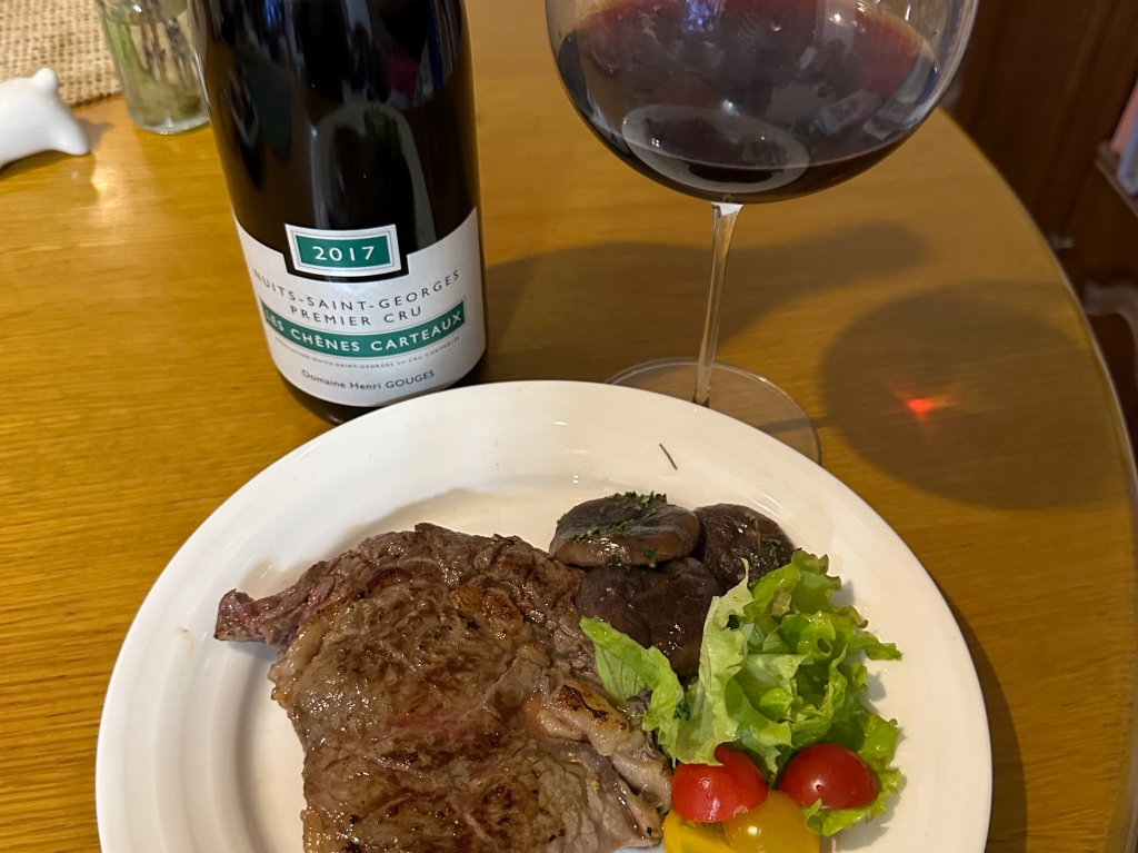 ニュイ・サンジョルジュの骨格を意識して、赤身のステーキと合わせましたが、ややワインが負け気味でした。