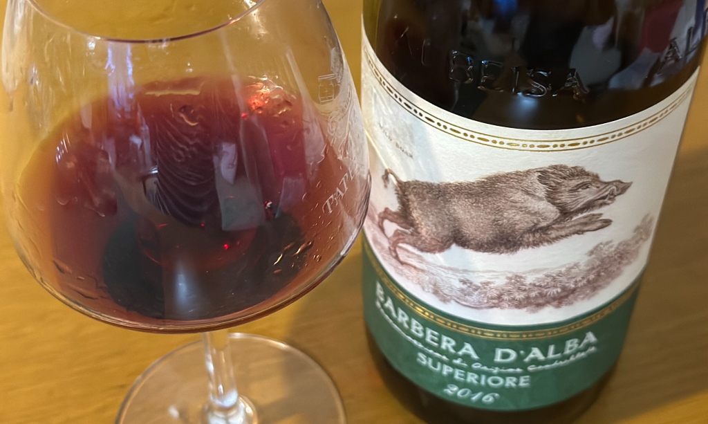 バローロの大規模生産者組合のテッレ・デル・バローロのバルベーラ・ダルバです。バローロの格調のあるクラシカルなデザインのラベルと異なり、猪が描かれたラベルで、店舗で見つけた時にテッレ・デル・バローロのワインということにピンときませんでした。スーペリオーレは、ノーマルのバルベーラ・ダルバに比べて熟度の高いブドウを使っているようです。