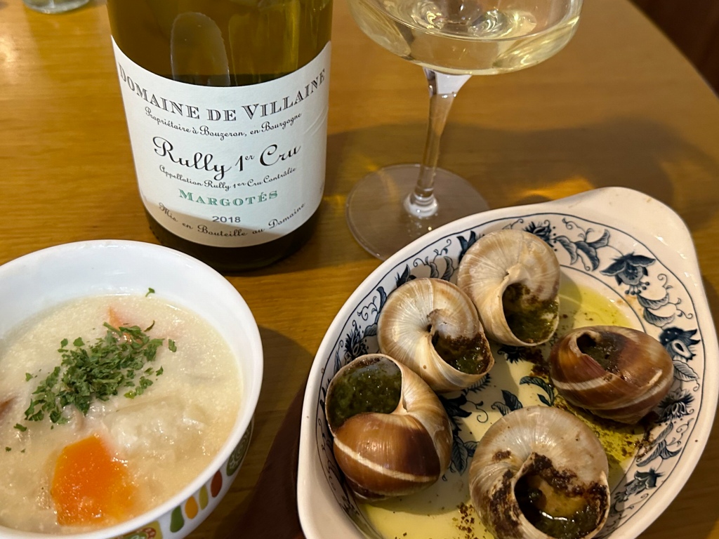 外観は、上記のムルソーに近いイエロー。柑橘果実、青リンゴ、洋梨の香り、レモンバーム、ミネラルにバニラやトースト。アタックには、やや豊かな綺麗な酸、熟度を感じる柑橘系や洋梨の果実味、クリーミーで、樽熟からの複雑性が感じられるが濃縮度は中程度。そろそろ熟成が進み、オイリーさも期待して、エスカルゴやホワイトシチューと合わせましたが、冷蔵庫で冷やし過ぎたため、上記の状態になるまで、結構時間がかかりました。ただ、まだ意外に少し若いかな?という印象も。さらなる熟成のポテンシャルはありそうです。
