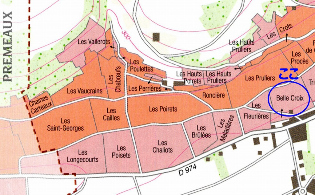 サヴィニー・レ・ボーヌのフラッグシップ畑、オー・ヴェルジュレスと地続きで西に延びた部分に位置する畑です。オーヴェルジュレスがやや南東向きの畑に対して、こちらは真南向きの斜面なので、日照的に優位な畑のようです。ただ、3haほどの小さな1級畑なので、オー・ヴェルジュレスと異なり他の造り手の名前はあまり聞きません。