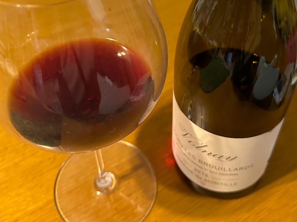 色合いはやや淡~中程度のラズベリーレッド。赤スグリ、ラズベリー、レッドチェリー、ブルーベリー、ローズ、リコリス、ナツメグ。ドライフィグ、スーボアの熟成香。味わいのアタックは柔らかく、熟した果実からの甘みを感じる。酸、タンニンともに円やか。中程度の凝縮感と余韻。ド・モンティーユらしい柔らかくおだやかで、万人に好かれそうなワインですが、個人的な好みでいえば、もう少し酸が欲しいか?。