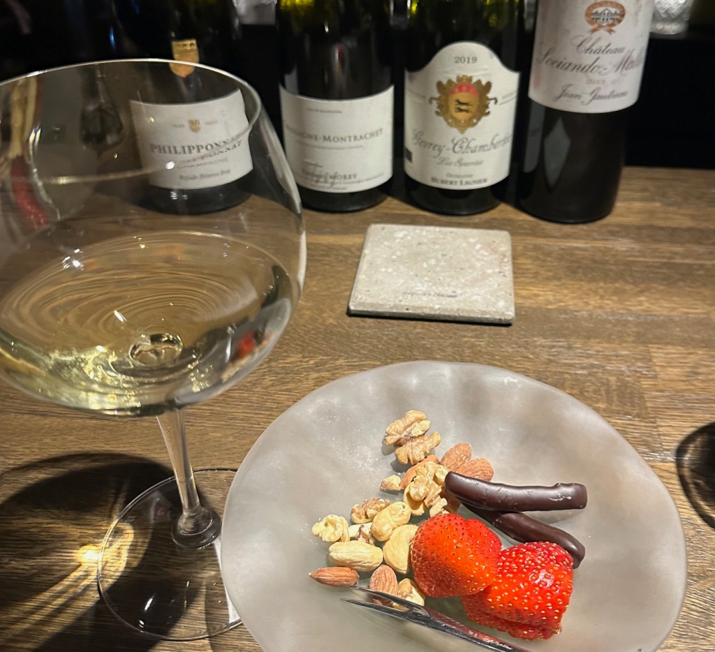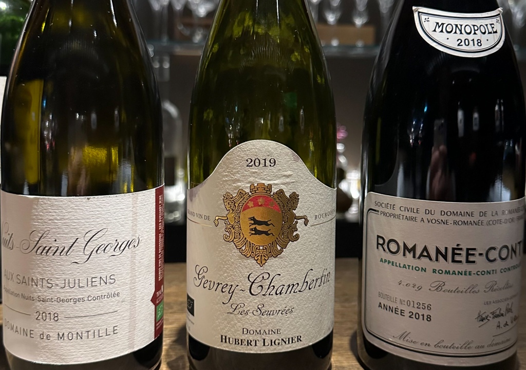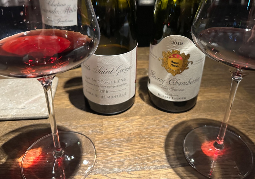 この日は、トマ・モレのシャサーニュ・モンラッシェ、ユベール・リニエのジュヴレ・シャンベルタン・レ・スヴレ2019、ドメーヌ・ド・モンティーユのニュイ・サンジョルジュ・レ・サン・ジュリアン2018の3種を楽しみました。