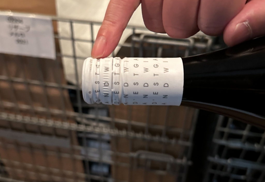 クロ―ジャーには、スクリューキャップを使用しています。STELVINの酸素透過性のあるスクリューキャップで2種類の異なる酸化透過性のものを使用しているとのこと。