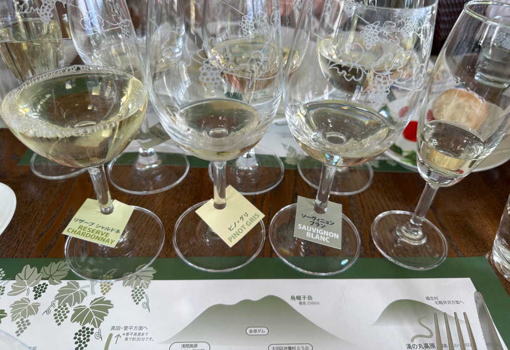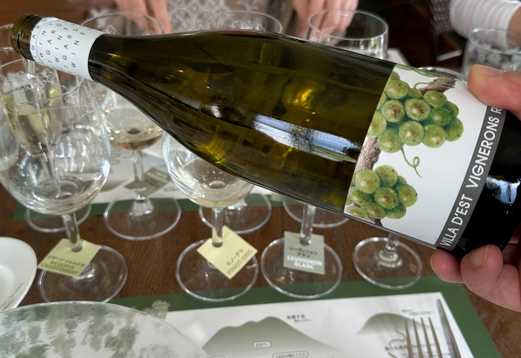 右端が、シャルドネ100%(ブラン・ド・ブラン)のスパークリング。このスパーリングは、ヴィラデストのグループワイナリー、アルカンヴィーニュのもののようです。瓶内二次発酵12ケ月のスパークリングワインは、柑橘や青リンゴを感じる爽やかな酸に瓶内二次発酵からのブリオッシュの複雑なアロマが加わる美味しい泡でした。
