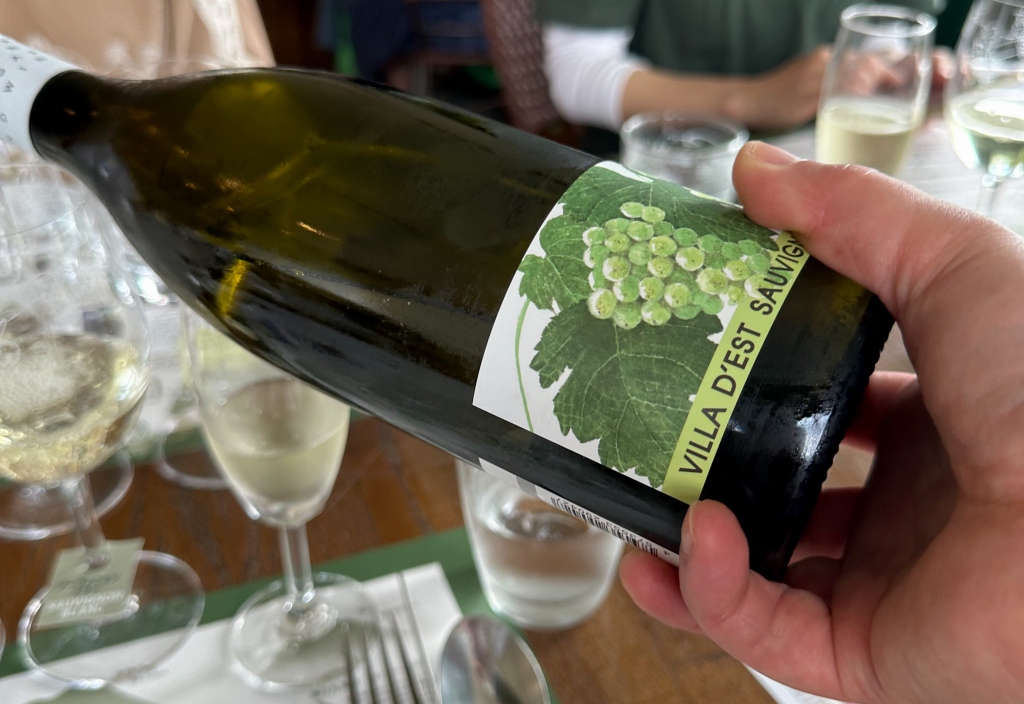 ↓ソーヴィニヨン・ブラン。柑橘系果実に心地よいフレッシュハーブ。パッションフルーツや青っぽいハーヴァルな香りは抑えられており、ロワールのSBに近い、食事に合わせやすいソーヴィニヨン・ブランの印象。2021年は、当初は涼しかったが、最後は雨が少なく結果的に糖度があがったとのこと。