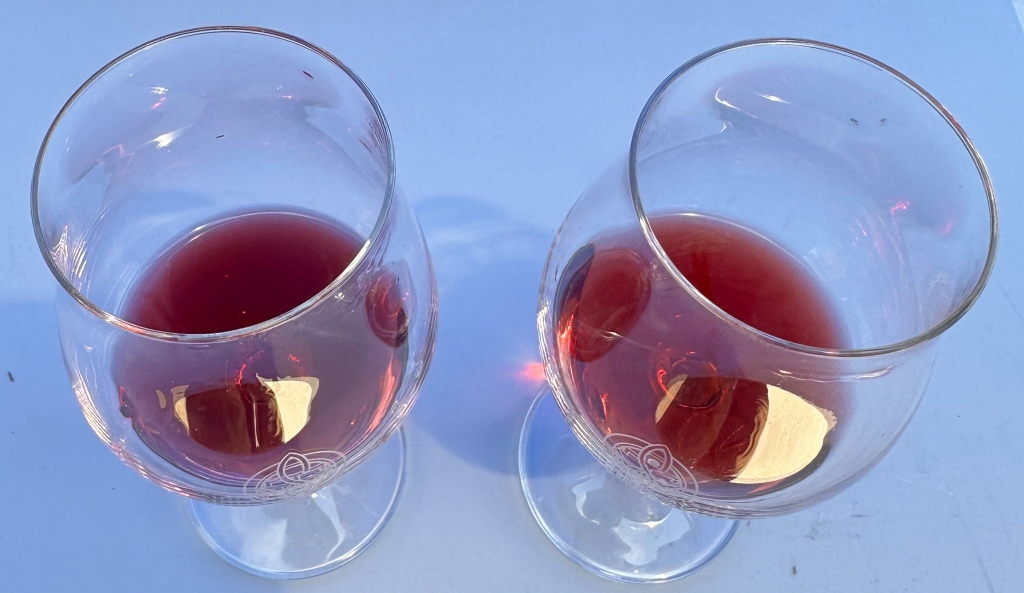 どちらもやや淡いルビー色ですが、右のカベルネ・フラン主体のSTW113の方がより淡い色調です。