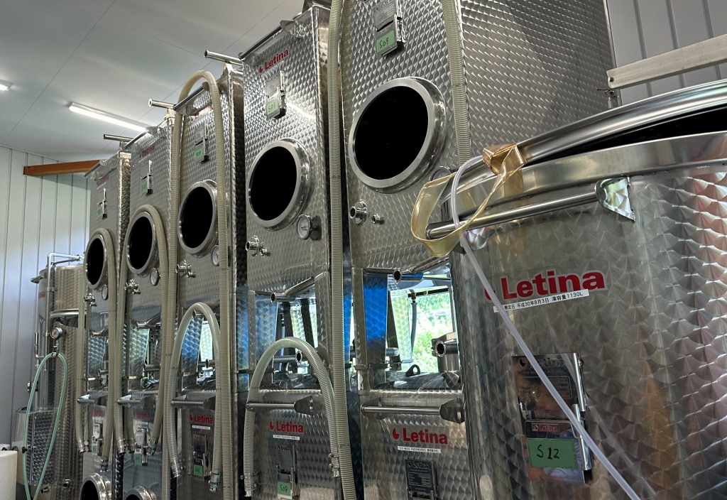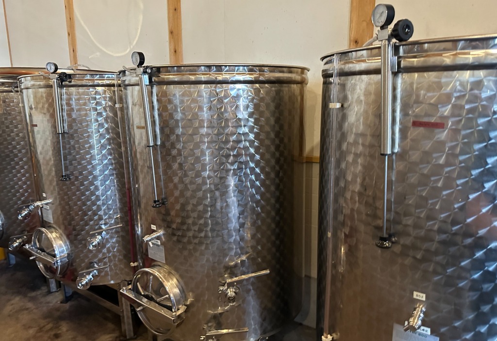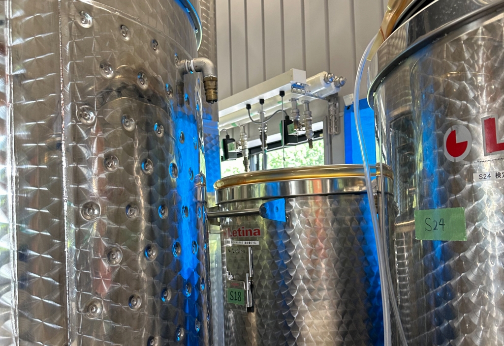施設内には、醸造用のステンレスタンクが並んでいます。500Lの比較的コンパクトなものが、(初めて見ましたが)縦に2基、積み重ねられていました。