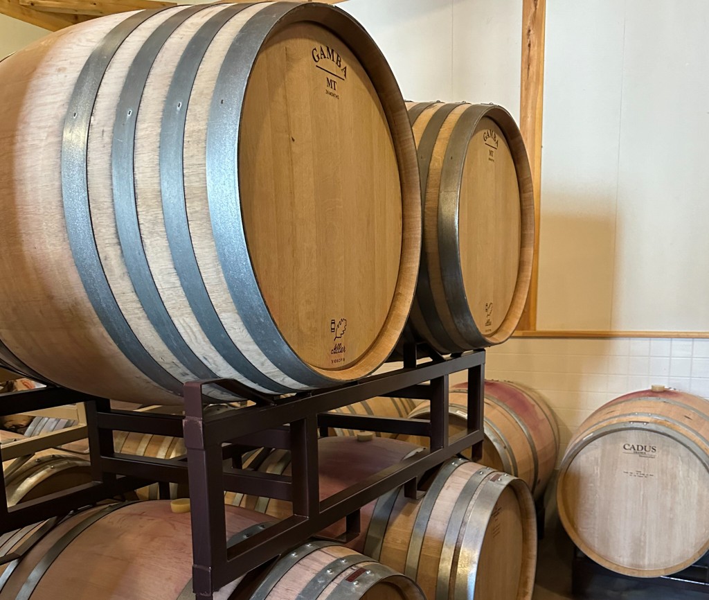 ー内部には、小型のステンレスタンクとオーク樽が並んでいます。ADUS社(フランス)やGAMB社(イタリア)等のオーク樽が使用されているようです。