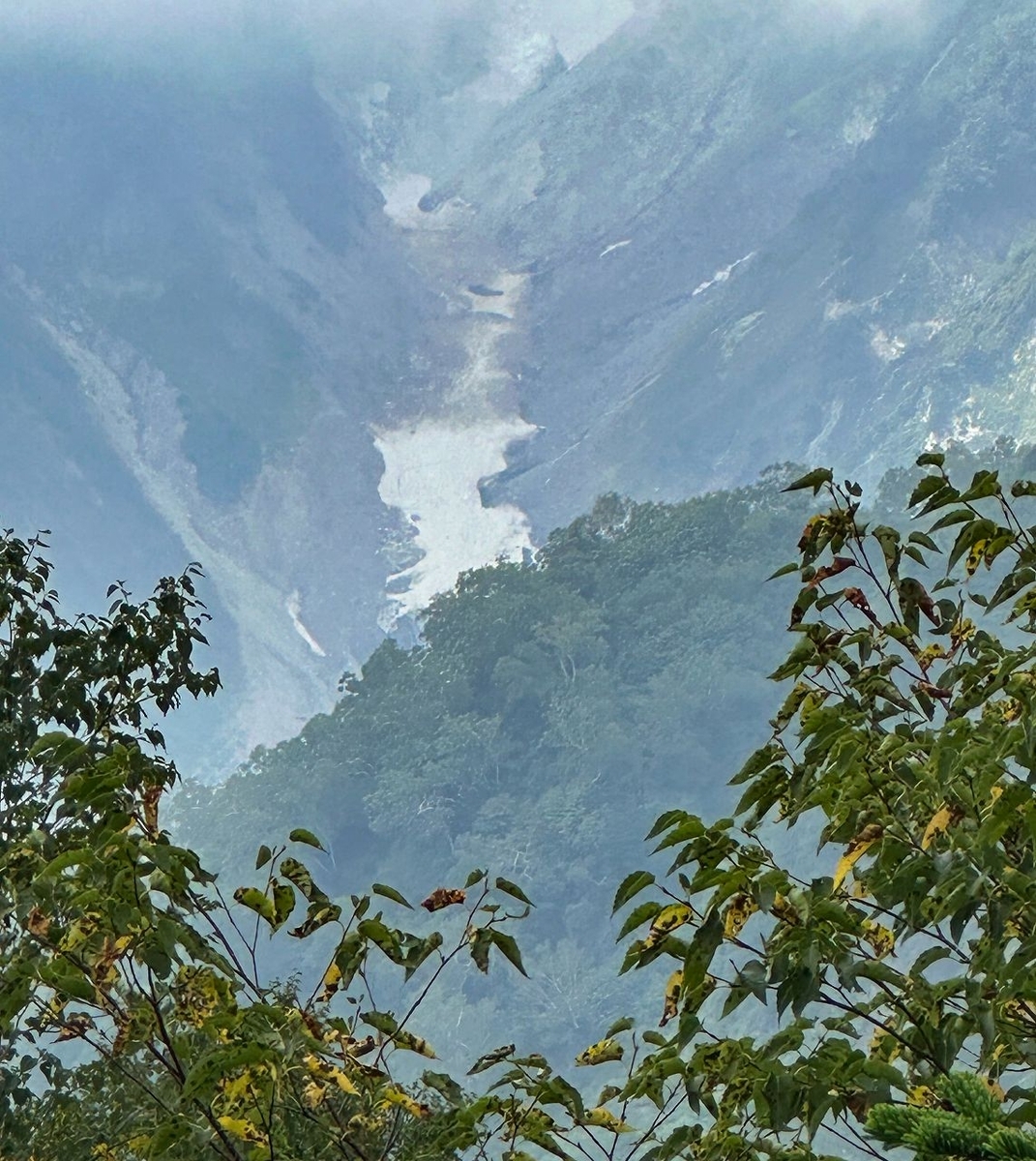 雲の切れ目から、なんとか白馬大雪渓も見ることができました。