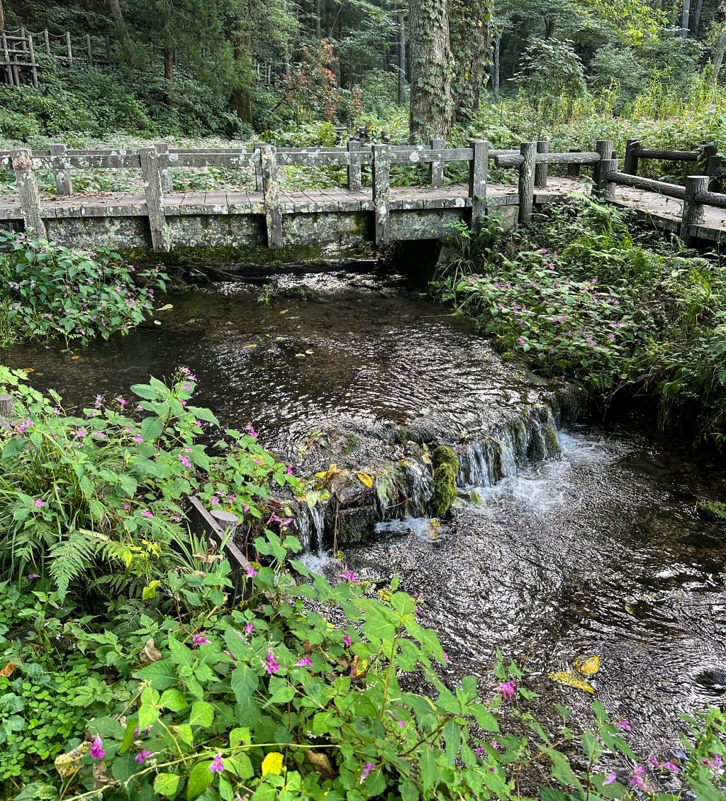 栂池高原から下山して、夕方までには、少し時間があったので、近くの姫川源流湧水を訪れました。この傍には、散策できる湿地がありますが、この日は、人が全くおらず、熊に注意の張り紙もあり、早々にホテルに戻りました。