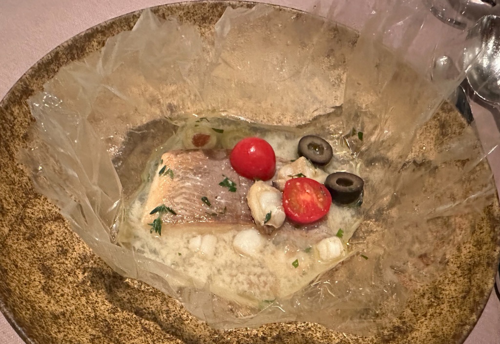 香草とガリックのスープで煮込んでおり、包まれているセロファンをカットすると漂う素晴らしい香りを楽しむことができました。これは絶品です!