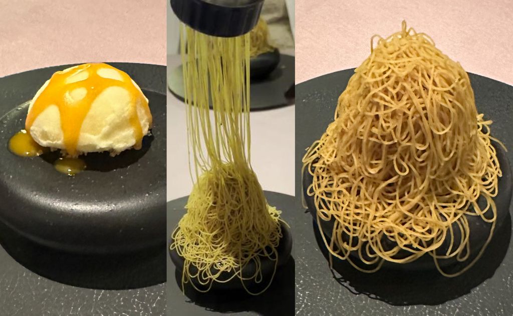 レモンソースのかかったアイスにその場でモンブランのクリームを絞ってくれというユニークな演出付きでした。