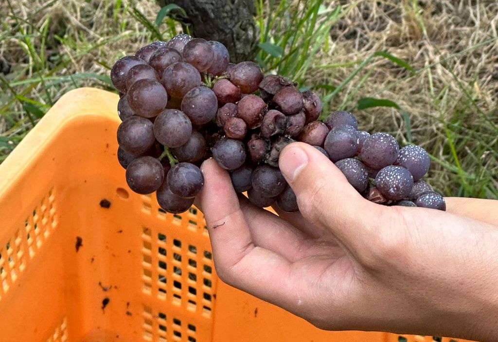 今年は、生育期に雨が多く、一部の果粒に灰色カビ病や、晩腐病等が発生しており、収穫の際に、ひとつひとつ取り除き、健全なブドウのみを収穫していきますが、結構大変な作業でした。