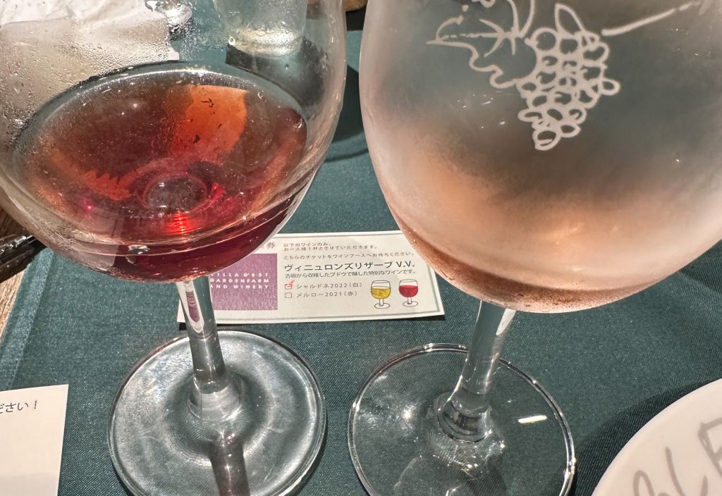↓タザワメルロー(左)とヴューロンズリザーブメルロー(右)