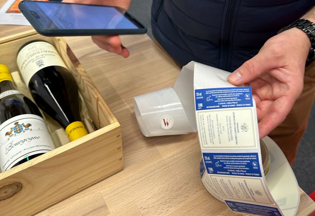 ↓こちらは、裏ラベルに見えない電子タグが組み込まれているようで、スマホをかざすとそのワインに関する情報を閲覧することができます。