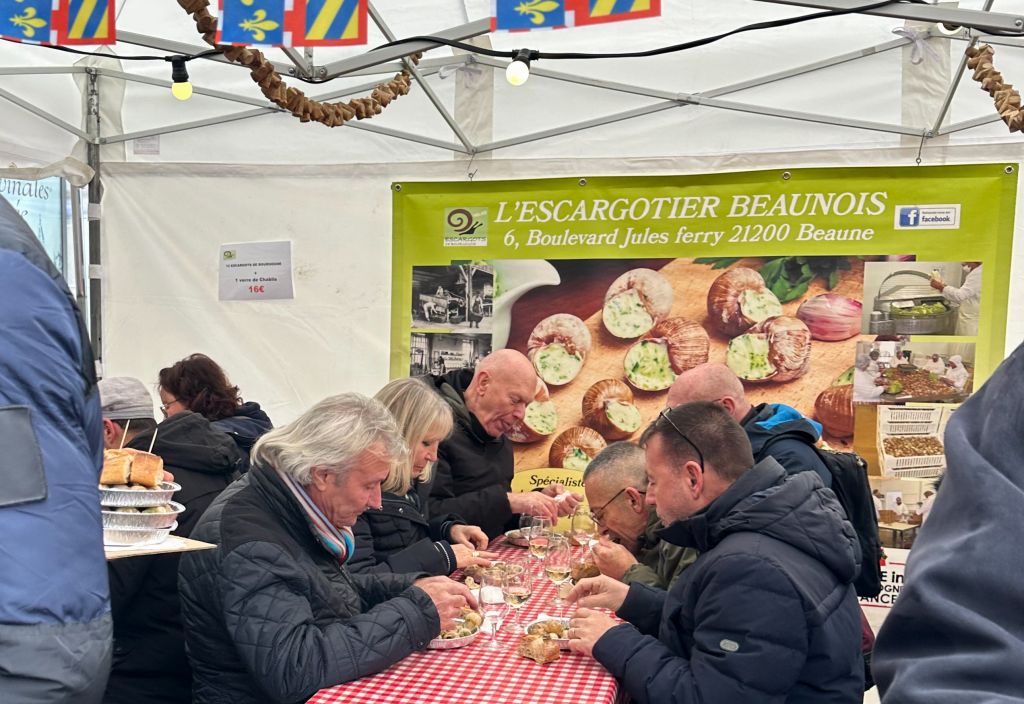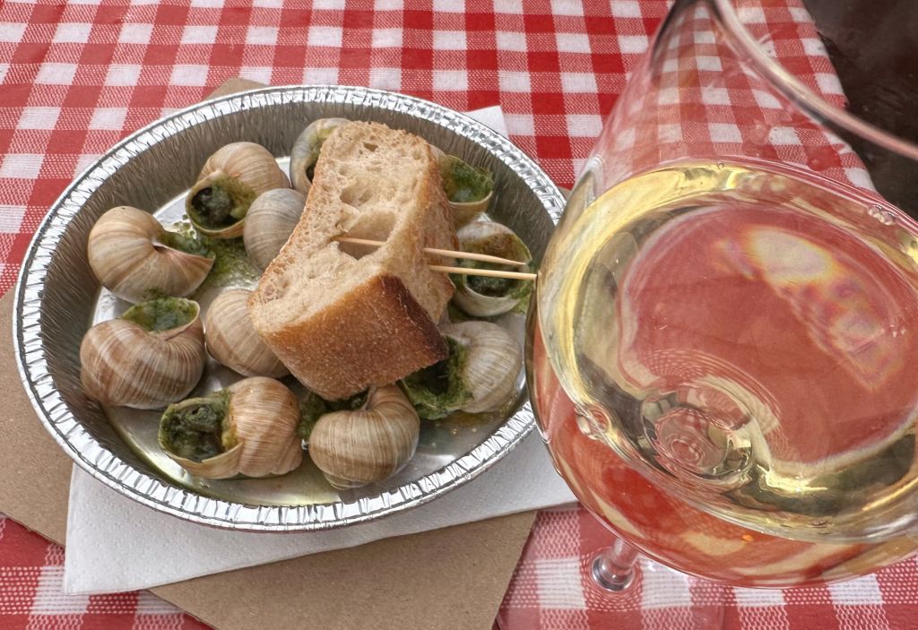 ↓土曜日の昼食は、屋台でエスカルゴとシャブリです。美味しい!