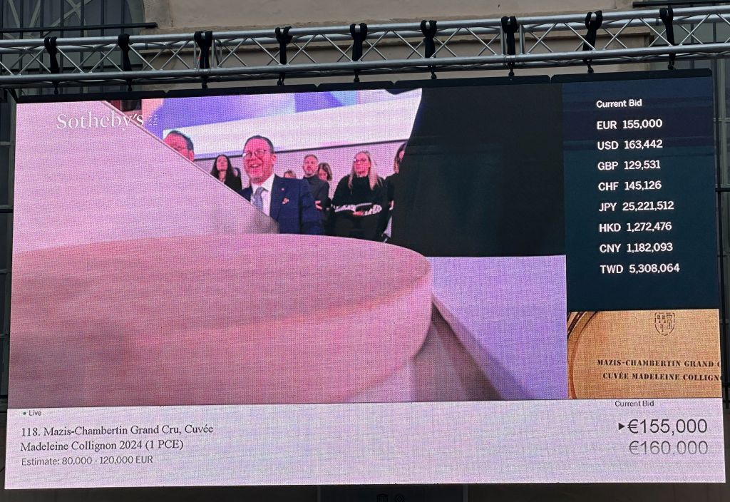ちなみにプレス発表によると、2024年のオークションの総売上げは、1440万4200€(昨年は2978万8500€)で大幅に減少しましたが、これは、収量減の影響で、1樽平均は31,540€(昨年は、30,389€/樽)と僅かに上昇していることから、価格低下は望めないようですが、大幅な価格上昇にはつながらないかと思います。ただ需要と供給の関係もあるので、そうなるかは判りません。