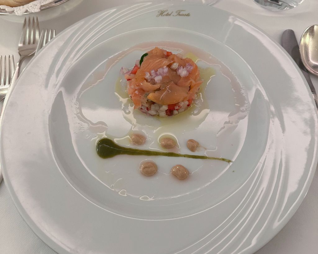 初日は料理の内容が良くわからなかったので、無難なロゼのプロセッコをオーダーしました。プロセッコといえば、かつては、白のスパークリングでしたが、最近になってロゼがDOC(統制原産地呼称)ワイン認められ、2021年からProsecco DOC Roseとして市場に出回っています。プロセッコ・ロゼは、グレラ種にピノ・ネロがブレンドされています。コスパに優れた泡として、もともと世界的に人気の高いプロセッコですが、ロゼが加わったことで、その人気も加速しているようで、スーパにも多くのプロセッコ・ロゼが並んでいました。