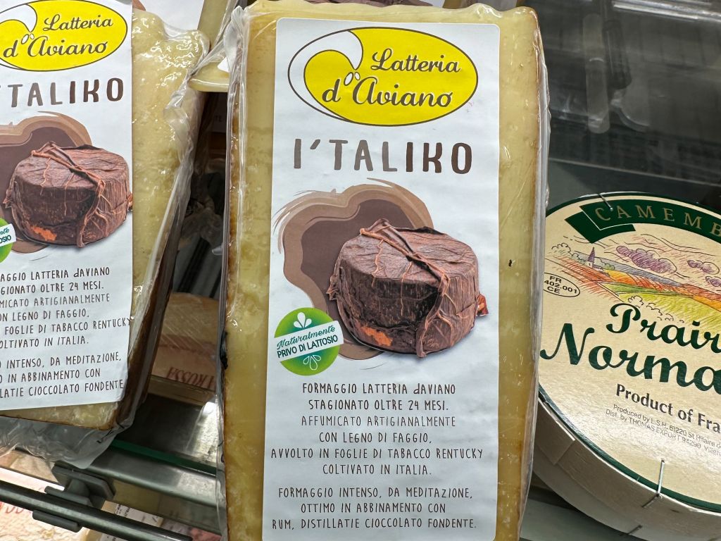 フリウリ産のイタリコI’TALIKOというタバコの葉で包んだ燻製チーズです。興味が湧きましたが、ニコチンを含んでいるという表示を見つけ、躊躇しましました。スモーカーには、受けるかもしれません。