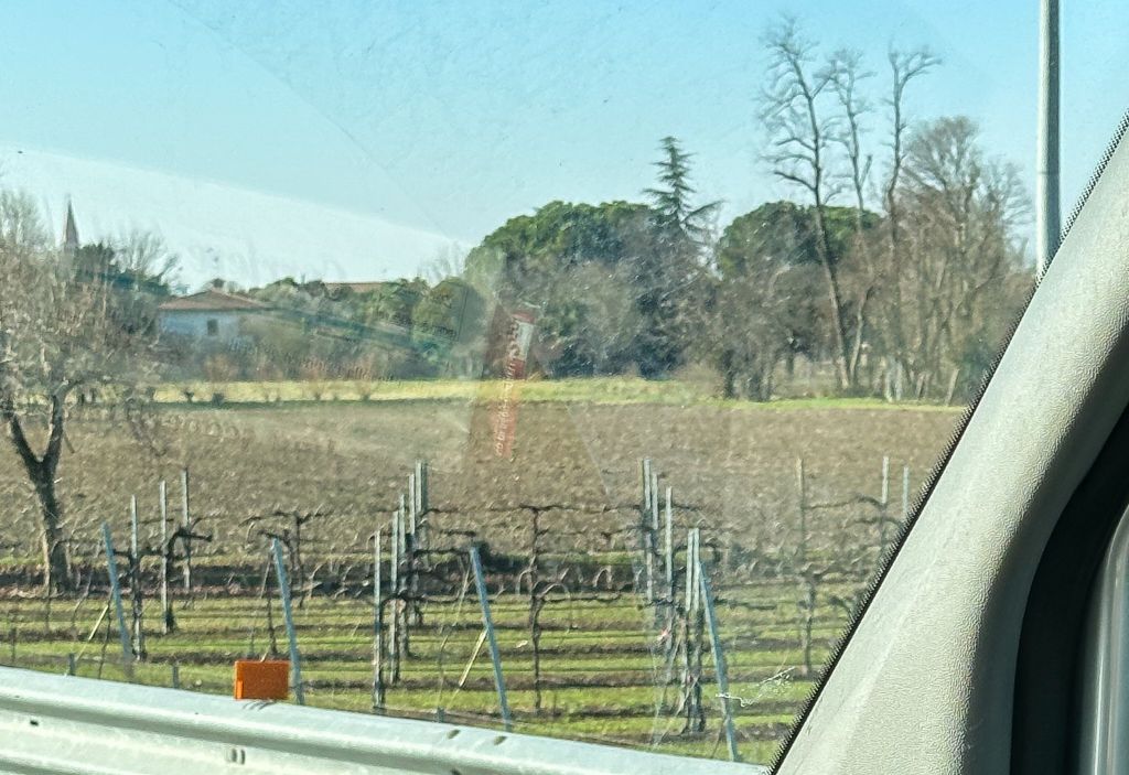 ↓ヴェネチアからコルチナに向かう道路の沿いの平地のいたるところに、ブドウの樹がみられましたが、これらがプロセッコのブドウ(グレラ種)とのこと。