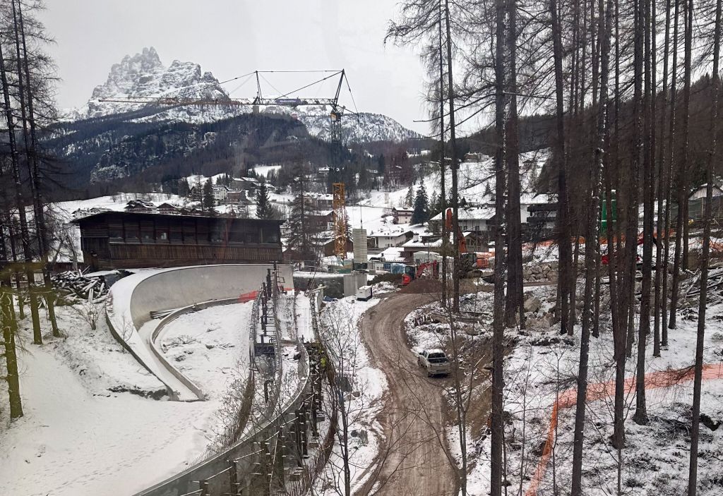 コルチナで開催されるアルペン競技の会場は、当然ながら既存のスキー場が利用されますが、リュージュのコースは、新設されるようで、その工事が大々的に行われていました。