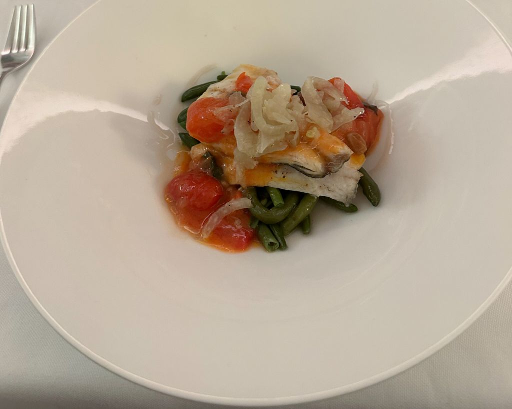 4日目は前菜にガルガネッリ・パスタ、メインは、鱸のフィレ(オリーブシチュー)をチョイス。