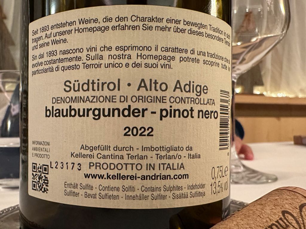 5日目:Andrian Pinot Noir Trentino-Alto Adig 2022