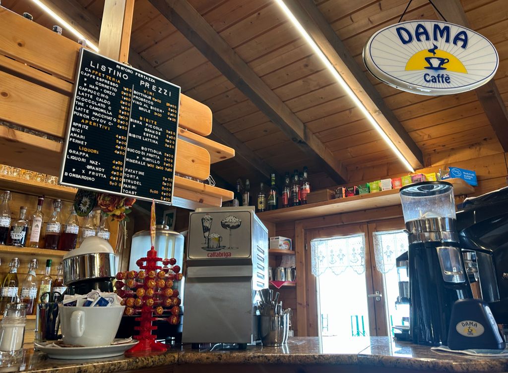 シヴェッタのスキー場を滑り終えた後、カフェで、グラッパを注文したところ、