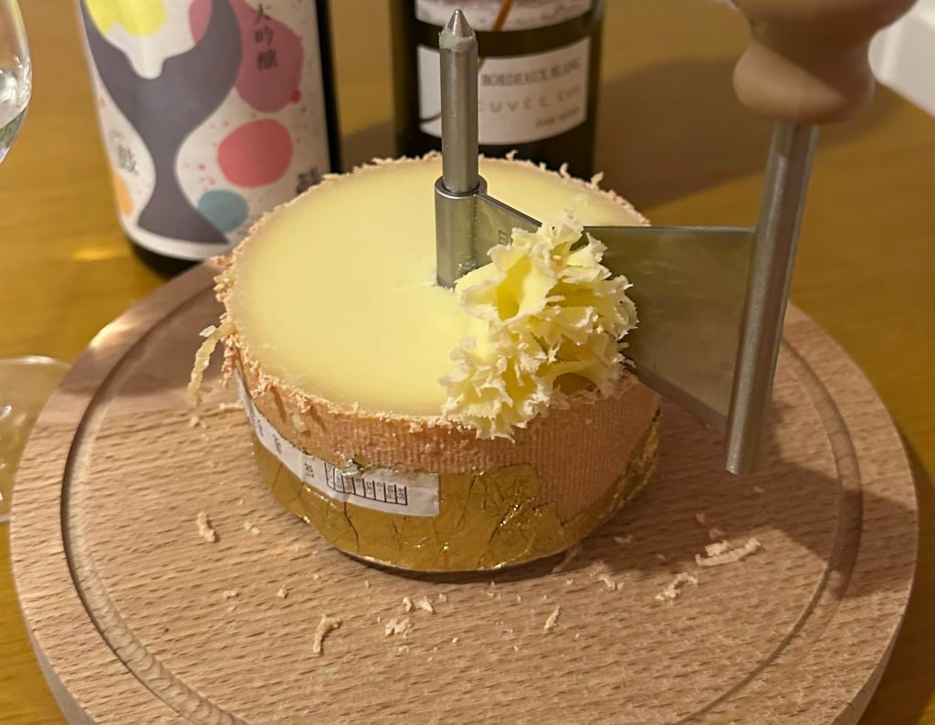 テト・デ・モワンヌは、イタリアではなく、スイスのチーズです。そのせいか少し高いですが、このチーズ、日本でホール(約900g)を購入すると1万円以上します。今回、ハーフで購入しました。