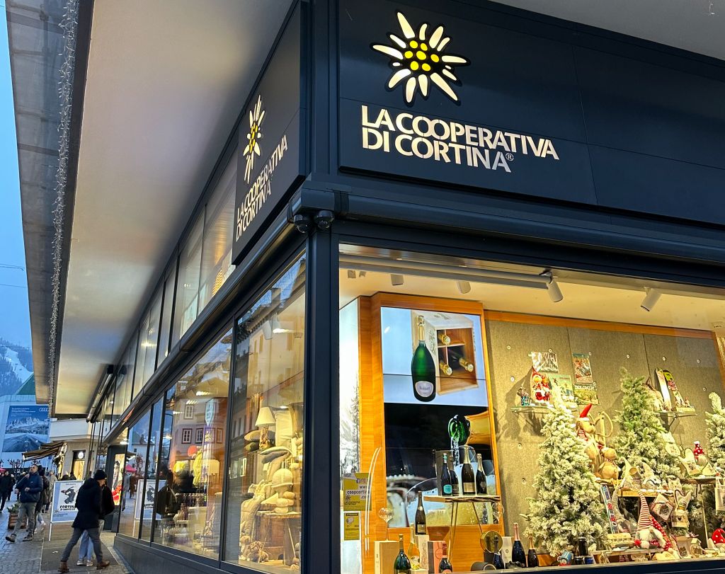 街の中心にあるコルチナの生協です。ロゴマークは、エーデルワイスの花です。
