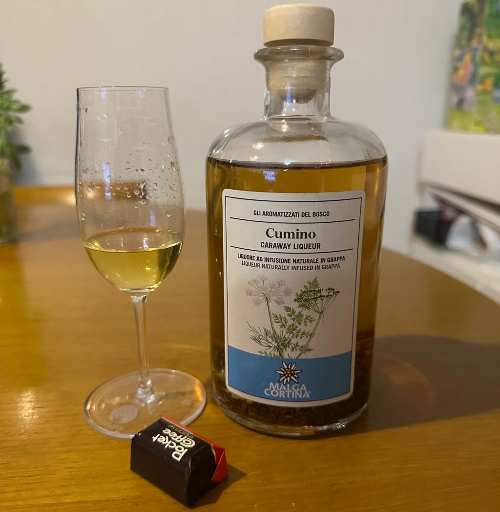 ↓さんざん迷った挙句、クミン入りのグラッパを買ってみました。