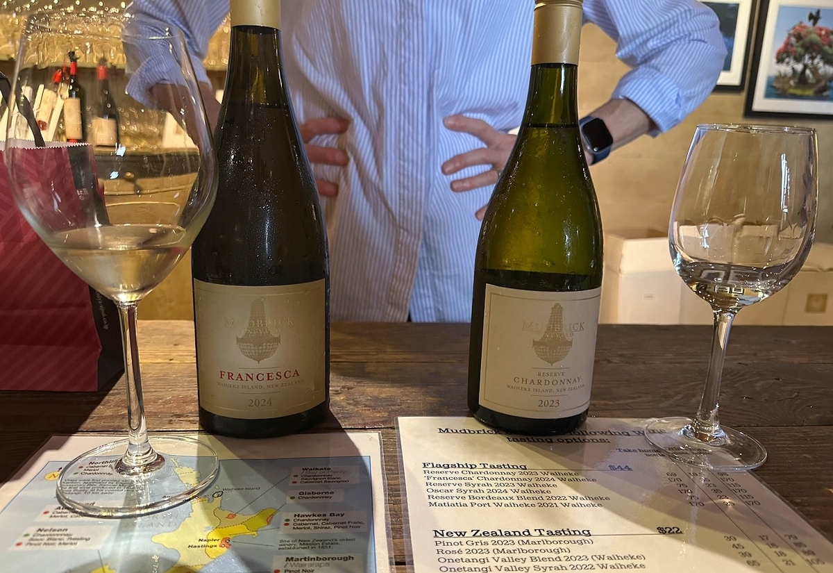 写真左上は、ニュージーランドで高価なワインのひとつとして知られているデスティニー・ベイです。ちなみに、最も高価なマグナ・プラミエ(Destiny Bay Magna Praemia)が835NZ$でした。
