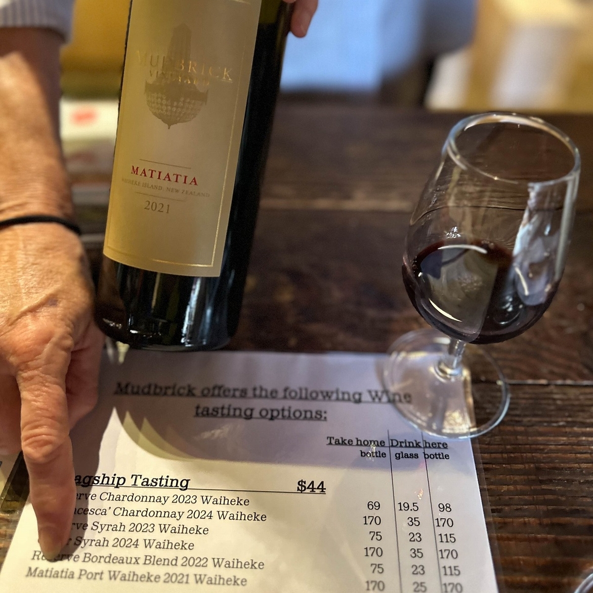 テースティングは、Flagship Tasting 44NZ$、New Zealand Tasting 22NZ$の2つのコースがありますが、後者はマールボロ産のワインを含むスタンダードレベルのワインのテースティングなので、ここは迷わず、ワイヘキ島産の6種類の上級ワインのテースティングができるFlagship Tasting をチョイスしました。