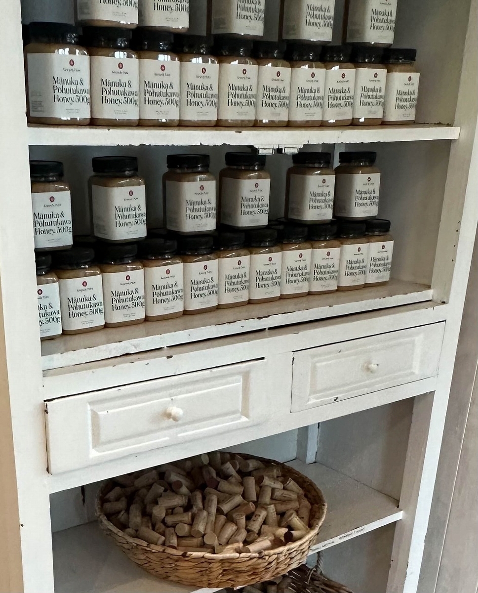 ハチミツが並んでいる棚の下にコルクがありますが、ここのワインは、スクリューキャップでなく全てコルクが使われています。